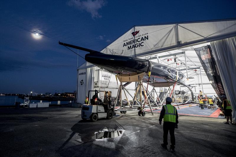 NYYC's AC75 Defiant emerges from their base - January 2020 - Pensacola, Florida © Will Ricketson