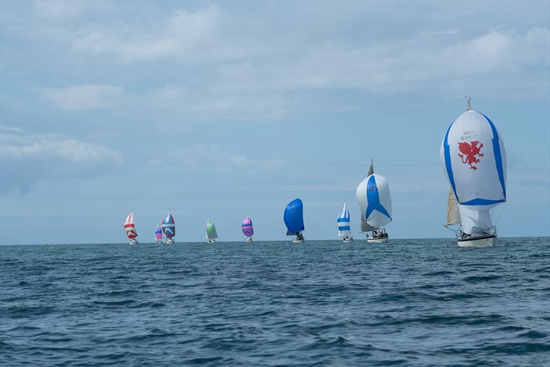Day One started with the Coastal Race involving a short beat to a buoy off Pengraig quarry, then a long downwind leg to Aberaeron (avoiding the harbour works), after which, came a tough windward leg back to New Quay Cruiser Northerly. This allowed a tactical dead-run back to Aberaeron and a last beat back to the Northerly, followed by a fast close reach to the finish off the end of New Quay pier - hopefully, providing a spectacle for those watching. Brainstorm (Super Seal 26 - Chris Seal and Martin Wood) had sailed a well-disciplined race and had managed to keep Rodmar (Fulmar 32 - Christine and Mark Willis) and Drychin Bach (Modified Hunter Duette - Dr Jonathan Price-Jones) behind them all the way. The IRC fleet finished in that order on handicap. The fist Hawk 20 was Bobble (Steve Berry/David Barnes/Simon Cox) followed by Sprite (Crawford McLeary/Kat Dawes/Rosie Davies/Sarah Skinner) and SerenDPD (Tom, Henry and Will Powell). The leading non-IRC boat (using Byron PY/Modified Yardstick) was the well-sailed Cadenza (Super Seal 26) of Justyn Jones en famille ahead of Richard Davies in Horizon (Jenneau 2000).