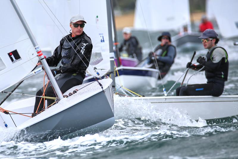 On Sunday, Race Officer Mark Foster and the crew drawn from the 50 Mt Martha volunteers ran four consecutive races, each one using a U flag start to reduce the likelihood of time-wasting general recalls. It was testing 15 to 25 knot conditions: fronts coming through and big changes in wind speed and direction. Plenty of capsizes with some less experienced sailors wisely opting to head for shore.