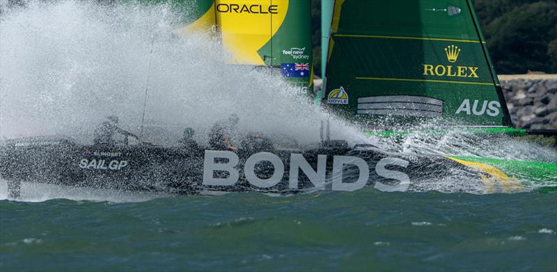 BONDS Flying Roos SailGP Team helmed by Tom Slingsby on Race Day 2 of the Emirates Great Britain Sail Grand Prix in Portsmouth, UK © Ricardo Pinto for SailGP