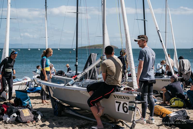 Monday ended up being a relaxed morning, with an AP over 3 shown, meaning no racing before 3 pm. As Storm Floris kicked in, 56 knots were recorded at Aberdaron just down the coast, confirming we would not be racing until late afternoon at the earliest. The weather on the beach once the rain had passed was delightful, so the waiting game for the 97-strong fleet began. After a few hours of sunbathing, PRO Arky and his team called a full briefing, and after some wind and sea state warnings, one race was set for 5pm.