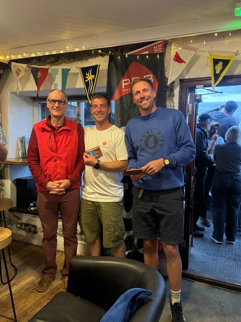 In the event at the last leeward mark they were 'battling' so hard they allowed boats behind to catch up. Charles & Dan ended up hitting the mark and doing a penalty turn. The main beneficiaries were Paul Young & Mhairi Ogilvie who took second, while Oli Boocock & Luke Hartshorn took third.