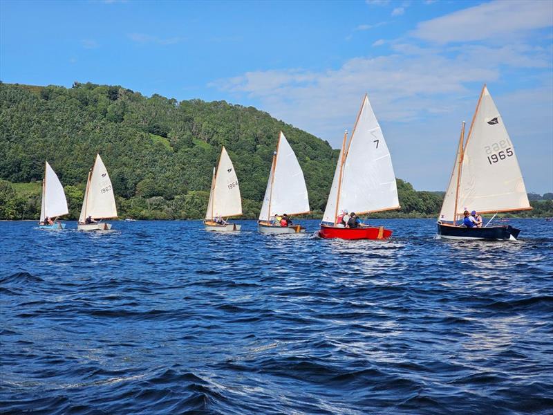 Six boats in line on a broad reach during the Gaffling Dinghy Championship at Ullswater © Mary Gibbs