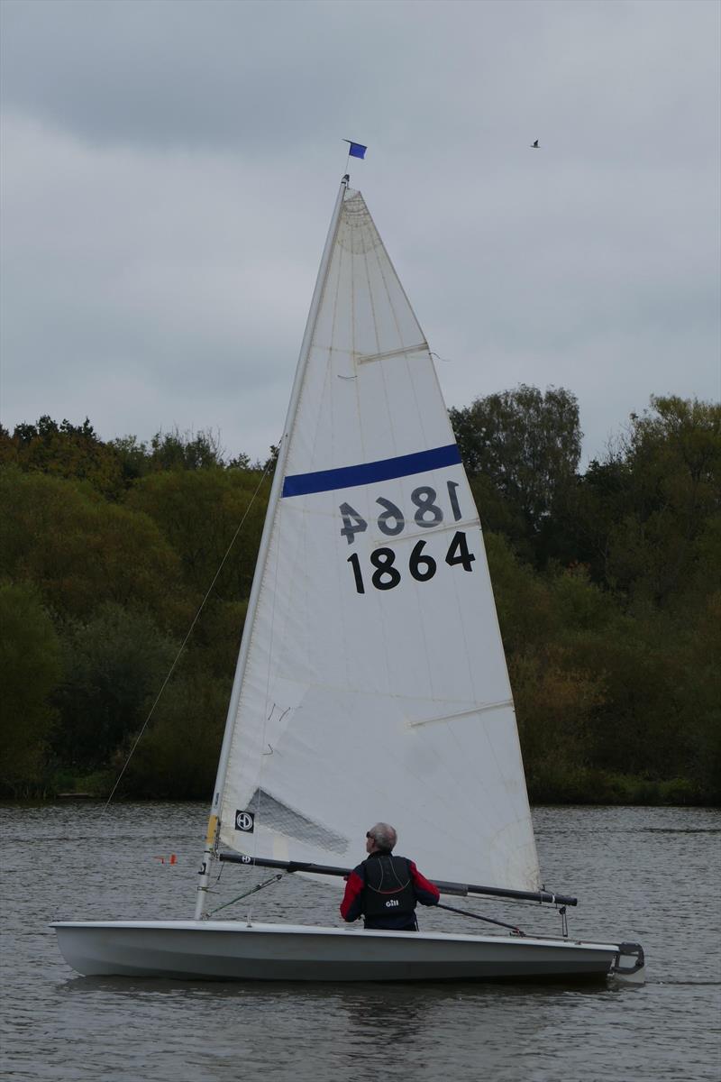 At Mark 1, windward, the lead was held by Dave who had sailed to the west side of the lake, followed by Pete Coop (WFSC) in 2177 who went to the east side looking for more wind but who remained in second place at Mark 2, being led by Dave. Steve Bellamy (WFSC) in 1868 took third position at Marks 1 and 2 with the rest of the fleet being strung out behind, all helms desperately looking for any additional breeze available.