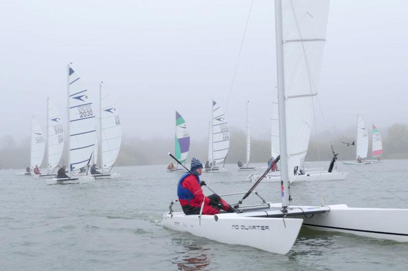 With bacon rolls consumed, light 5 mph winds and fog so thick you couldn't see the marks until you were half-way along the leg, the first race started without hitch.