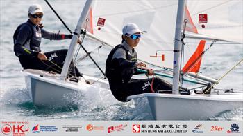 The 29er fleet saw Dominic West & Fynley Britton (GBR) take top honours, followed by Lily Britton & Matteo Gardenghi (GBR) in second place and Noah Fisk & Alex Simmonds (GBR) in third.