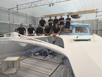 "Both internal and external orthotropic carbon fibre epoxy laminates were ultimately chosen to encapsulate a section of the hulls' existing 40mm spotted gum planking, thereby offering the most structural effective solution for transfer of each 3 tonne fin load.