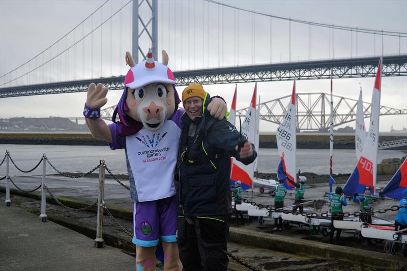Glasgow 2026 Mascot Finnie with RYA Scotland CEO Finlo Cottier - Celtic Cup 2026 © RYA Scotland