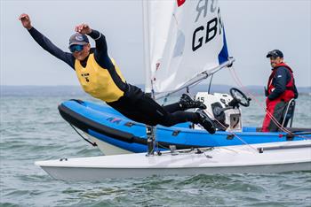 India and Isla got off to a flying start, holding off the boats of Pat Bromilow / Thomas Kelsall, and Hugo Fletcher / Alex Flint. Race 6 saw the tussle at the top continue between Neil and Joe, with Neil pipping Joe and Hennie to take the honors, leaving everything to play for in the last race. A match-racing duel unfolded, with Neil Marsden's 40+ years of experience shining through to leave the pair of boats finishing 3rd and 5th, giving Neil and Merle the overall Championship win. Firs place in the final race, and their first bullet in a major Championship went to Jessica Skelding and Chris Hampshire.